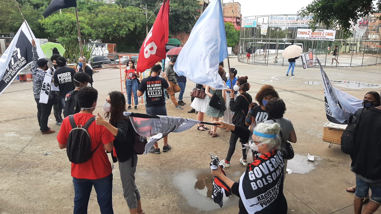 No último dia 27 de novembro, o APUBH UFMG+ se somou aos movimentos sociais e entidades das periferias num ato político-social no Aglomerado da Serra. Organizado pelo Unidade Popular pelo Socialismo – MG, o MLB – Minas Gerais e o Movimento Luta de Classes – MG, o 2º Fora Bolsonaro nas Periferias levantou a bandeira contra o desemprego, a fome e a miséria. O ato visou também denunciar as consequências para a população das periferias da famigerada e equivocada política econômica, sanitária e social do governo Bolsonaro.