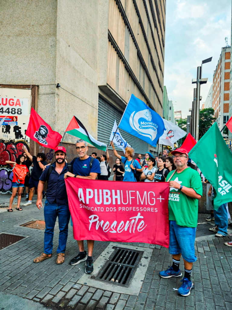 O APUBH se fez representar no Ato por entender a centralidade da luta anti-imperialista na construção da unidade dos movimentos estudantil, sindical e popular e na afirmação da soberania de nosso país, como condição fundamental para um desenvolvimento econômico com redução da desigualdade social e melhoria da qualidade de vida nosso povo.