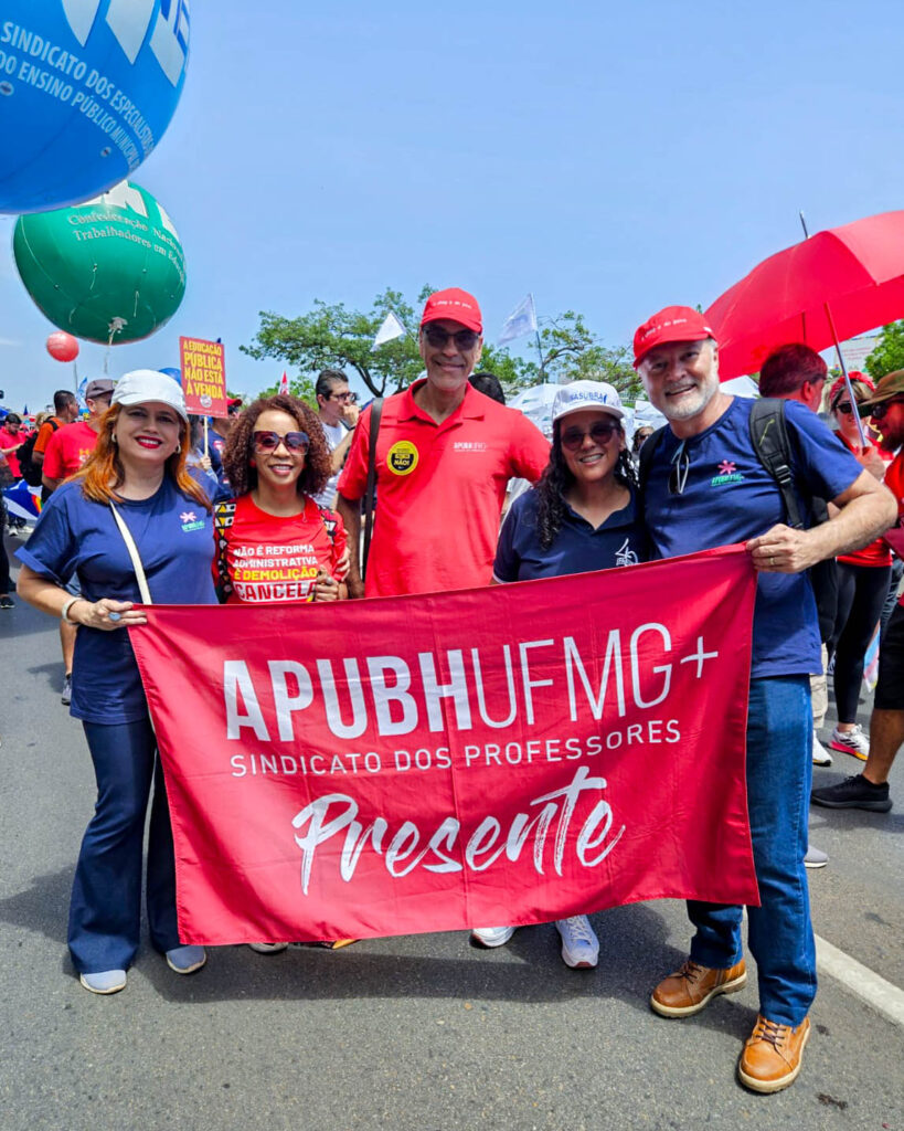 A Marcha ocorreu em protesto contra a Proposta de Emenda à Constituição (PEC) 38/2025, que também foi chamada por manifestantes no ato de “PEC do revólver trezoitão”, porque foi concebida para “matar” o serviço público no Brasil. Entre os milhares de manifestantes estavam três representantes do APUBHUFMG+: o Prof. Helder F. Paula, que é presidente do sindicato, o Prof. Tarcísio Mauro Vago, que é da Setorial Aposentadoria e Memória e a Profa. Annamaria Ravaro Vago, que representa o ICB no Conselho de Representantes do sindicato.