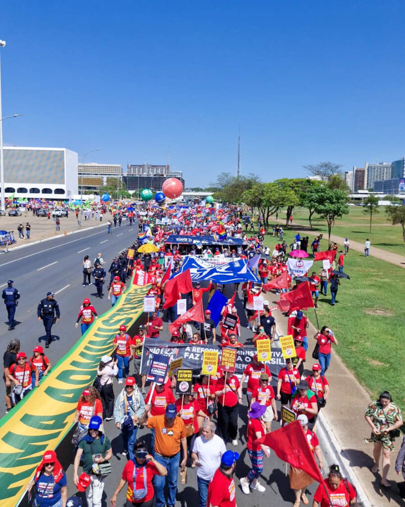 No dia 29/10 foi realizada em Brasília (DF) a Marcha Nacional em Defesa do Serviço Público. Sob um sol intenso, entre 10h e 12h, milhares de servidores federais, estaduais e municipais marcharam, por cerca de 2,5 Km, desde o Museu Nacional da República até a Esplanada dos Ministérios,no limite que hoje é permitido para a aproximação.  O acesso ao Congresso Nacional para marchas e passeatas não é mais permitido, desde a tentativa fracassada de golpe ocorrida no dia 08 de janeiro de 2023.