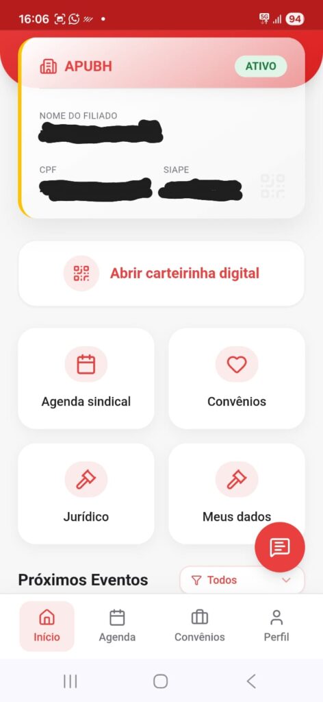Até chegar a você, filiado(a) o aplicativo passou por inúmeros testes e, certamente, pode ser aperfeiçoado na medida em que for utilizado. Sempre que encontrar alguma dificuldade no uso, alguma inconsistência ou sugestão de melhoria, faça contato com a equipe de comunicação do APUBHUFMG+: comunicacao@apubh.org.br ou 31 98452 1713 (WhatsApp).