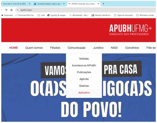 Outro caminho de instalação, consiste em acessar a página https://apubh.org.br/apubhapp/ do site do APUBH, cuja localização, na barra de Menu do site, aparece na figura 2 abaixo.