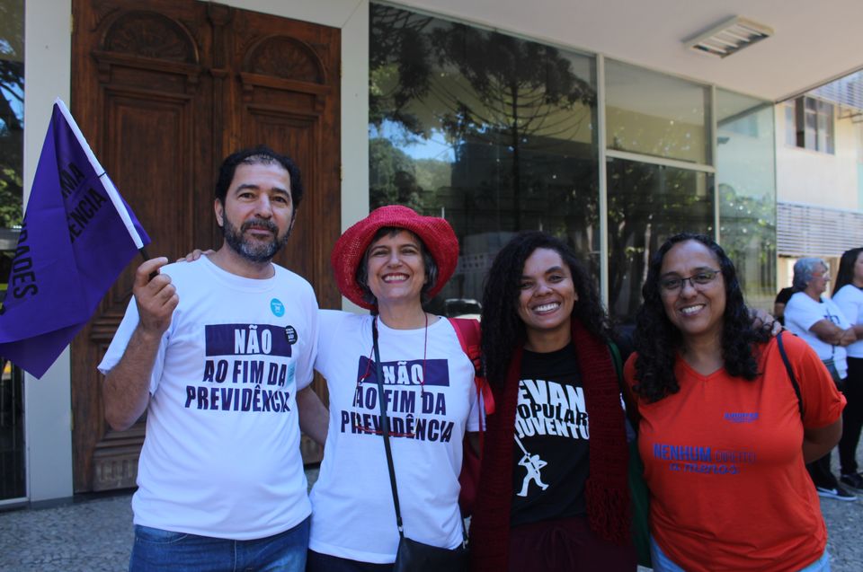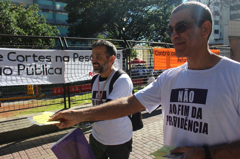 O Campus Saúde da UFMG foi o local de concentração da comunidade acadêmica. A manhã foi um momento de conscientizar e mobilizar a população, através da panfletagem e diálogo. A oposição do APUBH à destruição do direito à aposentadoria foi impressa na camiseta “NÃO ao fim da previdência”, distribuída aos presentes. Na tenda do sindicato, também foram distribuídos bandeiras e adesivos.