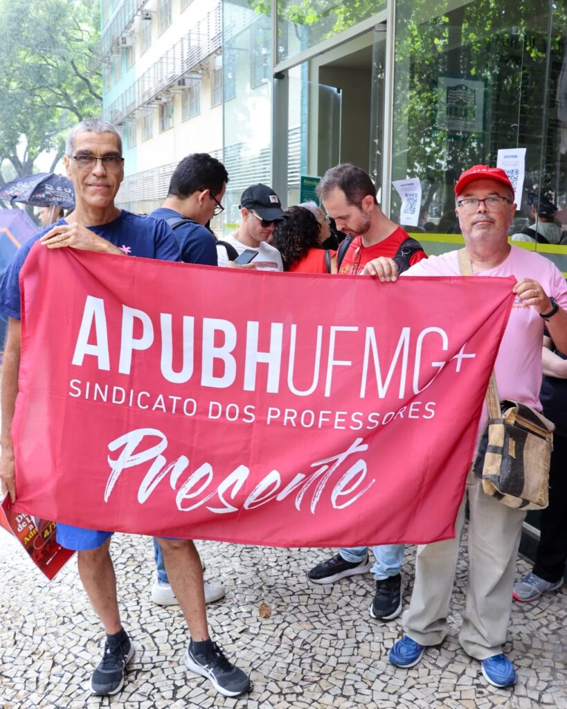 O APUBHUFMG+ foi representado por seu presidente, o Prof. Helder de Figueiredo e Paula, e por seu assessor político, Prof. Adelson Fernandes Moreira | Foto: Acervo do APUBHUFMG+.