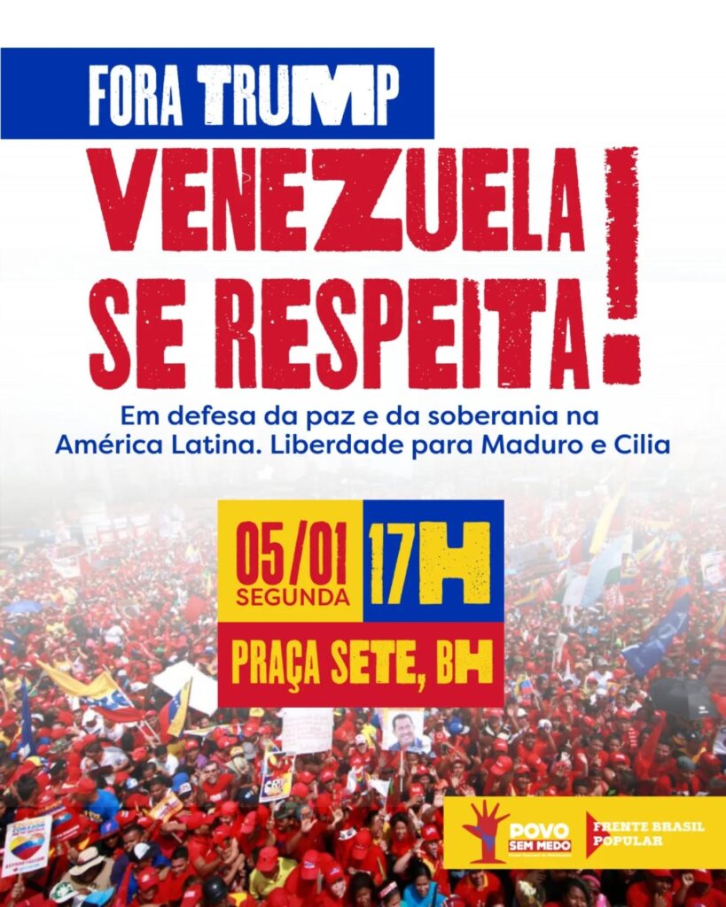 A Rede Globo e todos os órgãos da imprensa capitalista no Brasil afirmam que o presidente sequestrado da Venezuela, Nicolás Maduro, é um ditador. Essa imprensa assim, explícita ou implicitamente, apoia o Terrorismo de Estado norte-americano. Contudo, relatórios da ONU e do próprio Departamento de Estado dos EUA desmentem a justificativa oficial da agressão imperialista que foi apresentada como uma ação de guerra ao narcotráfico. Isso porque esses relatórios mostram que a Venezuela não é um corredor relevante do narcotráfico para os EUA, dado que as drogas chegam a esse país principalmente pelo Pacífico e não pelo Caribe. O próprio Donald Trump já escancarou a razão do ataque ao afirmar que as empresas norte-americanas assumirão o controle das reservas de petróleo venezuelanas. Todos sabemos que a Venezuela possui as maiores reservas de petróleo de todo mundo. O Brasil possui grandes reservas de terras raras que também são cobiçadas pelos EUA. Por essas e outras razões, não podemos ficar inertes e devemos exigir o fim da agressão imperialista na Venezuela e na América Latina com a imediata libertação do presidente venezuelano, que foi sequestrado junto com sua esposa, pelos EUA, no dia 03/01/2026.