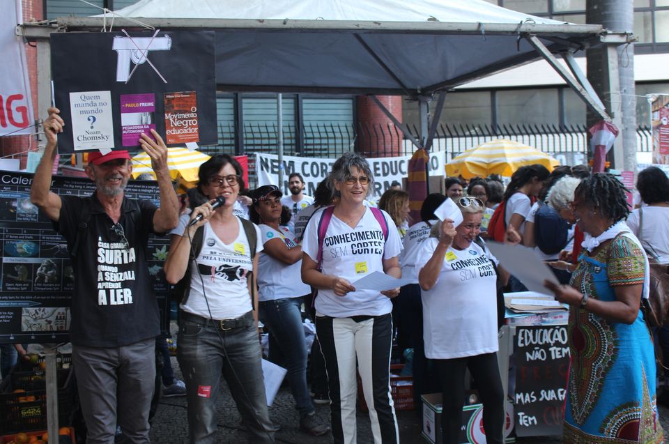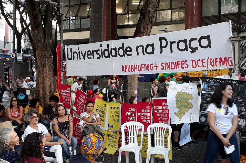 Ao longo do dia, a “Universidade na Praça” atraiu a atenção de crianças, jovens, adultos e idosos que pararam para ouvir e aprender sobre geociências, mineração sustentável, formação e evolução da terra, dentre outros. A “Tenda da Terra” foi uma iniciativa de professores e estudantes de graduação e pós-graduação do Instituto de Geociências da UFMG. As aulas na Praça foram encerradas sob um coro de vozes que entoaram a versão de André Sá (UFS) da canção “Bella Ciao”. Um dos trechos dessa versão diz: “nossas pesquisas comprometidas. AOS CORTES, NÃO! CORTES NÃO! CORTES NÃO! NÃO! NÃO! Nossas pesquisas comprometidas, pois sem verbas já estão!”