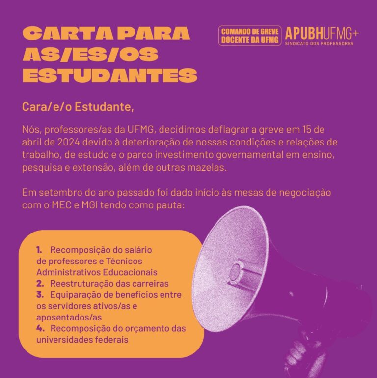Professores da UFMG rejeitam a proposta do governo e mantêm a greve