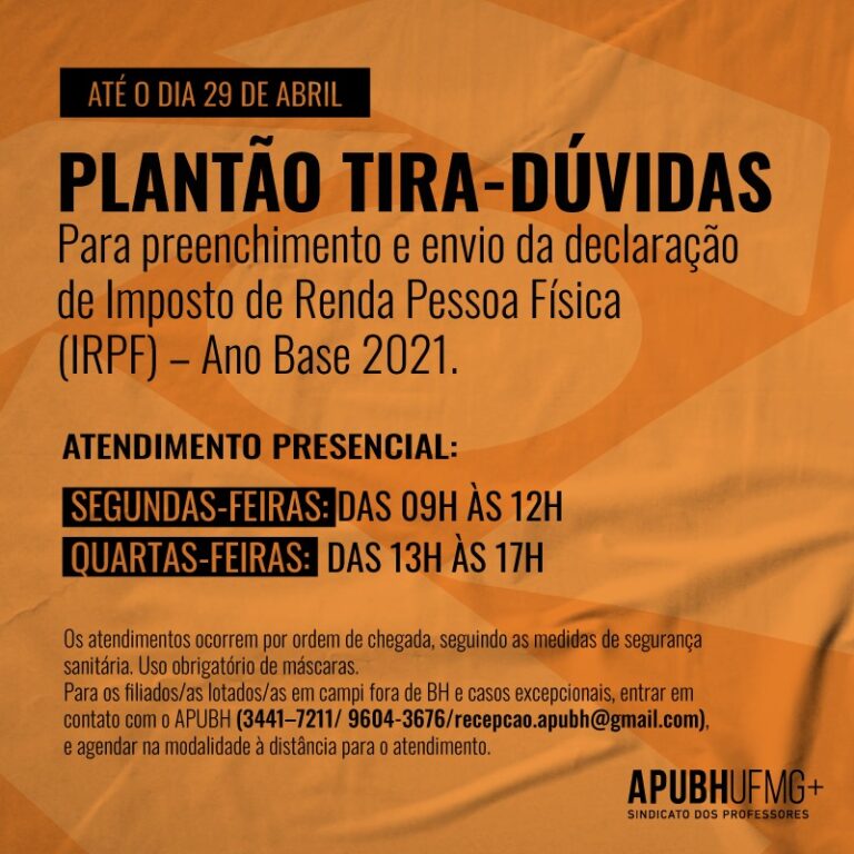 APUBH disponibiliza atendimento contábil presencial sobre IRPF – ano base 2021