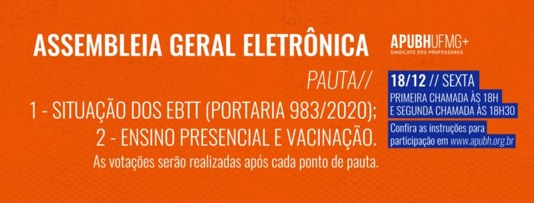 Assembleia do APUBH aprovou a realização de consulta à categoria sobre o calendário acadêmico de 2021