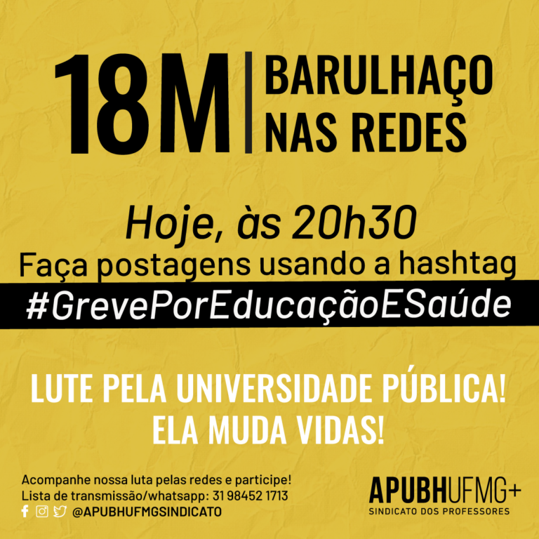 18M – Barulhaço nas redes hoje às 20h30 pela GrevePorEducaçãoESaúde