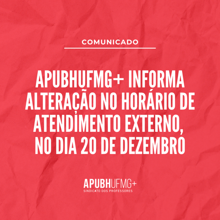 APUBHUFMG+ informa alteração no horário de atendimento externo, no dia 20 de dezembro