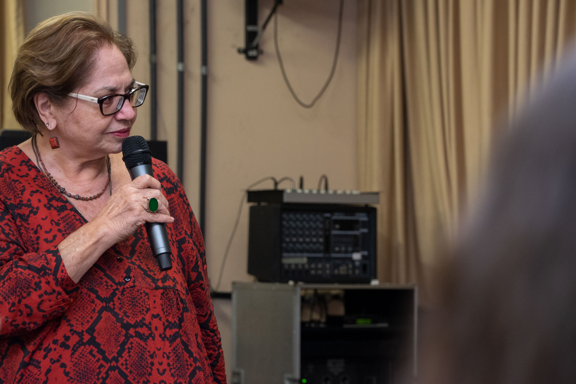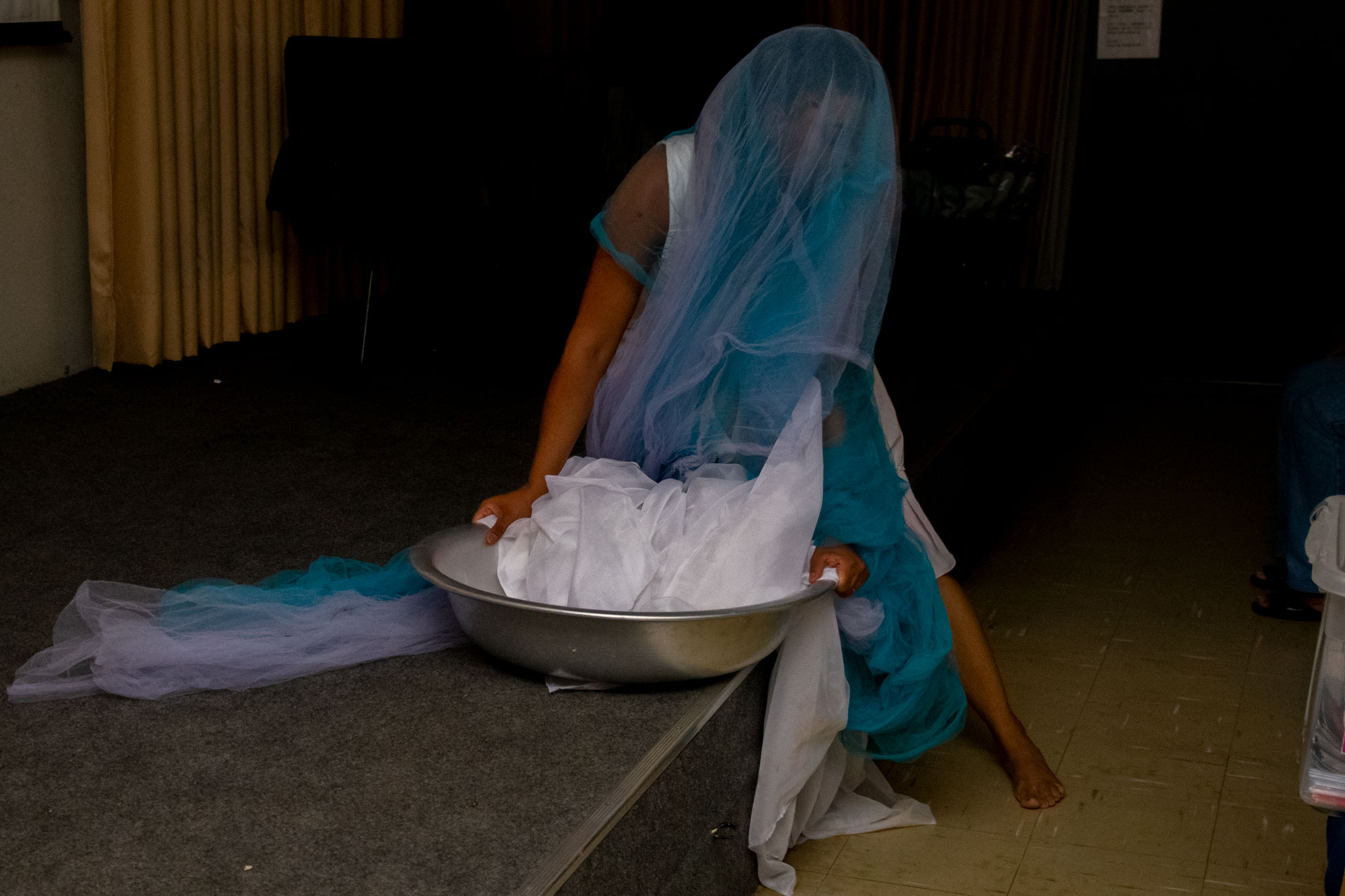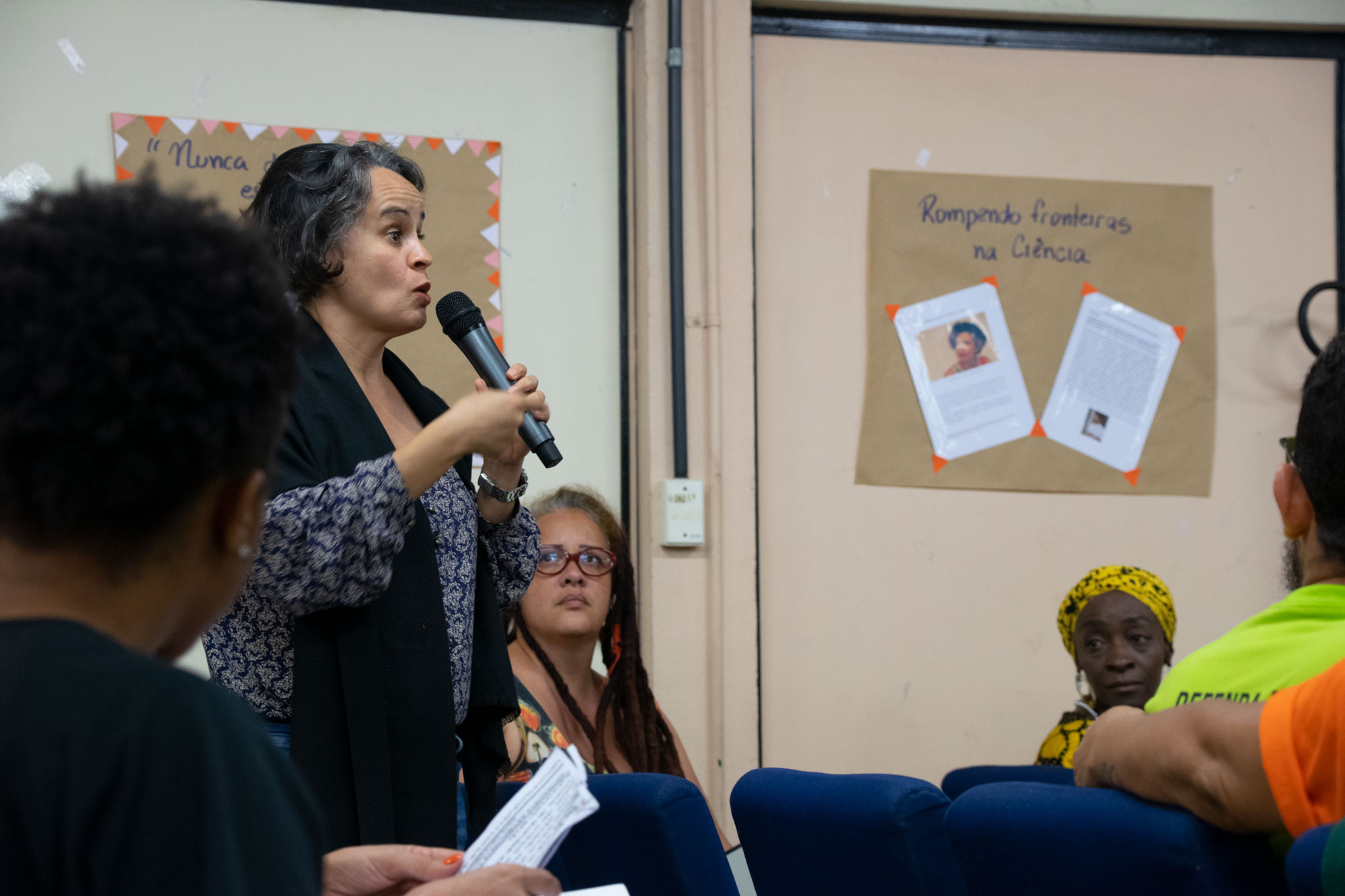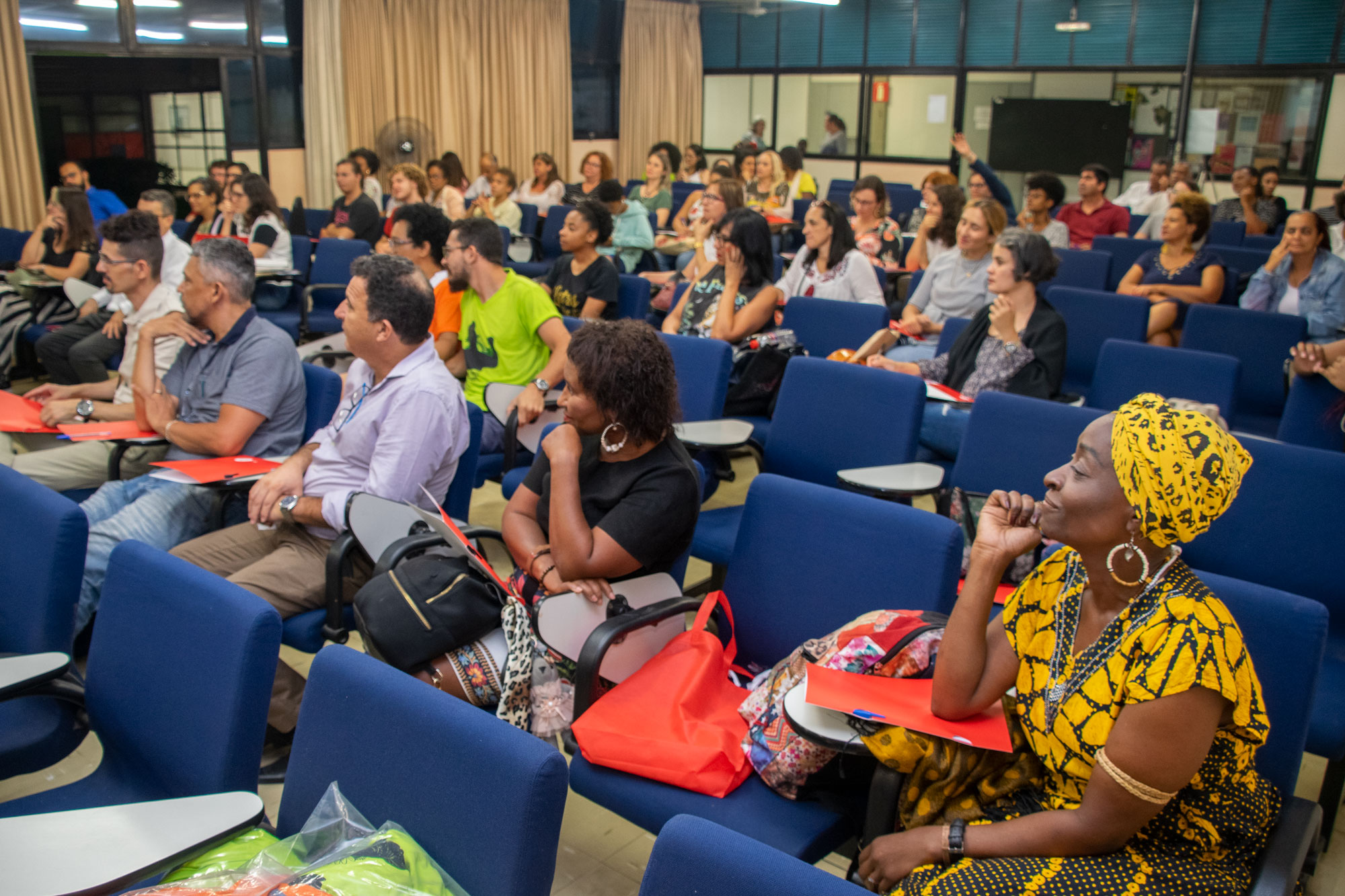 Na última noite (29/11) da 1ª Semana Negra do APUBH, Janaina Barros e Wagner Leite Viana, docentes da Escola de Belas-Artes (EBA/UFMG), realizaram a videoperformance “Processo mau-olhado bem olhado: oração sobre nossas águas”, no Auditório Luiz Pompeu de Campos da Faculdade de Educação (FaE/UFMG).