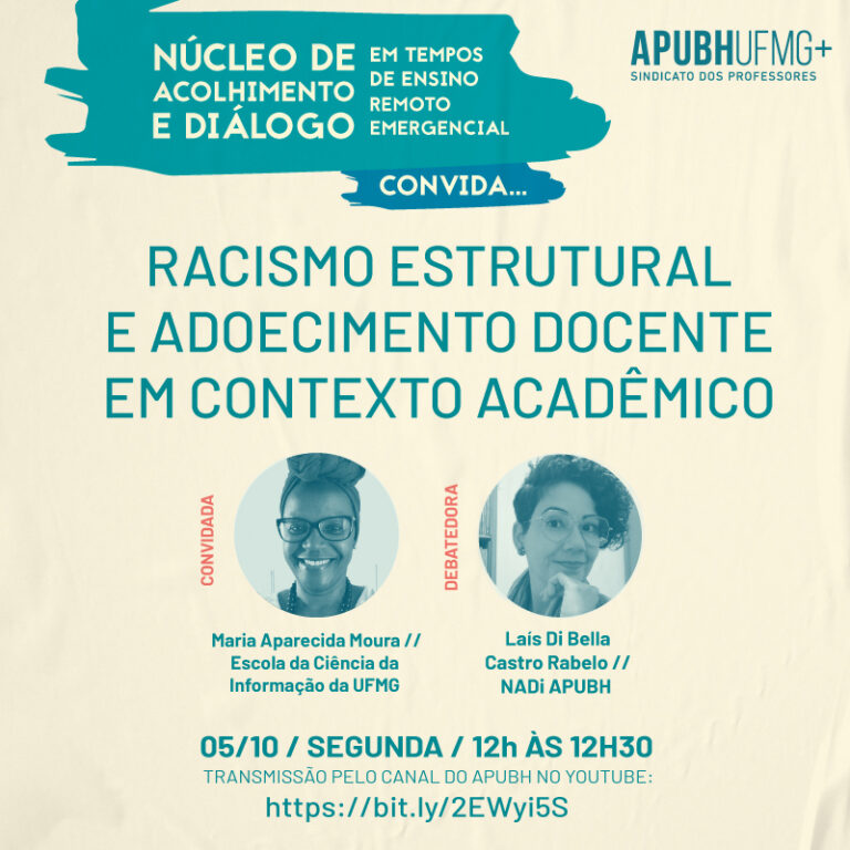 O próximo Programa do NADi/APUBH debaterá o racismo estrutural e o adoecimento docente na academia