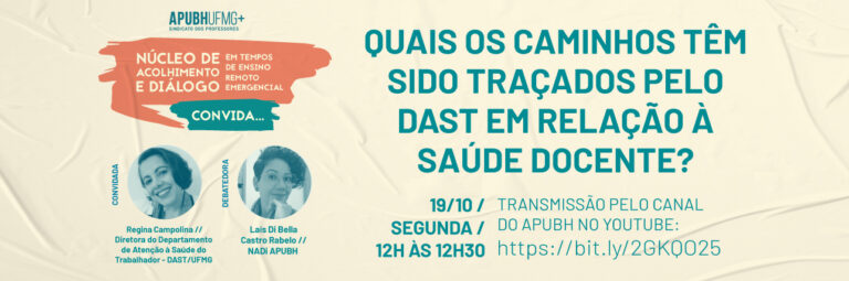 Saúde docente em tempos de ERE: entre a medida de controle epidemiológico e a quebra de bem estar é o tema da próxima entrevista do NADi APUBH