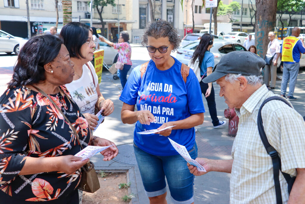 O APUBHUFMG+ contribuiu com a panfletagem conduzida pelo Sindágua-MG, somando forças ao Dia de luta contra a privatização da COPASA | Foto: Acervo do APUBHUFMG+.