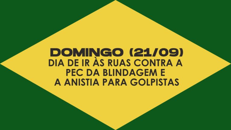 Domingo (21/09) é dia de ir às ruas contra a PEC da Blindagem e a anistia para golpistas