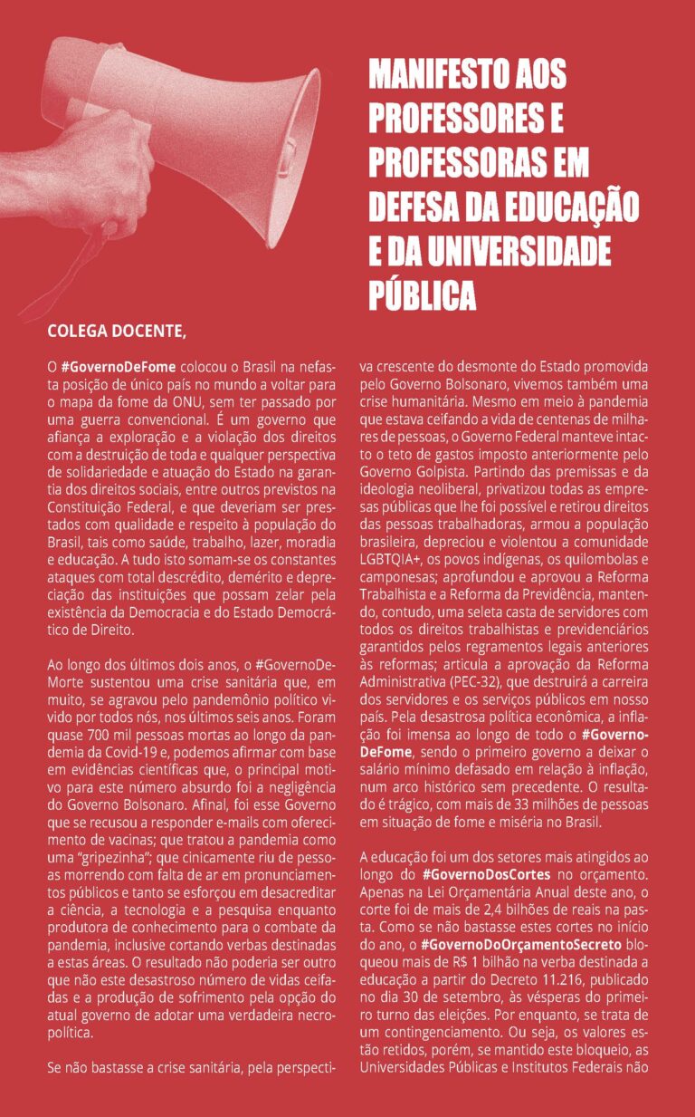 Manifesto aos professores e professoras em defesa da educação e da universidade pública