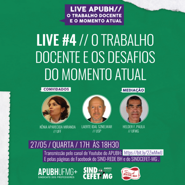 Quarta live do APUBH debate o trabalho docente e os desafios do momento atual