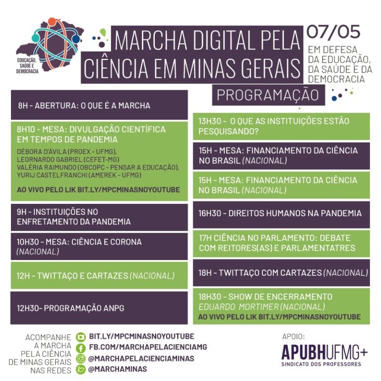 Confira a programação da Marcha Digital pela Ciência em Minas Gerais