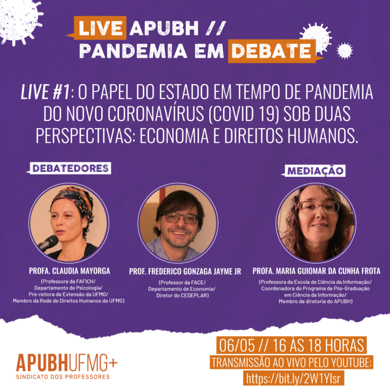 APUBH promove live para discutir ” O papel do Estado em tempo de pandemia do novo coronavírus (COVID 19)”