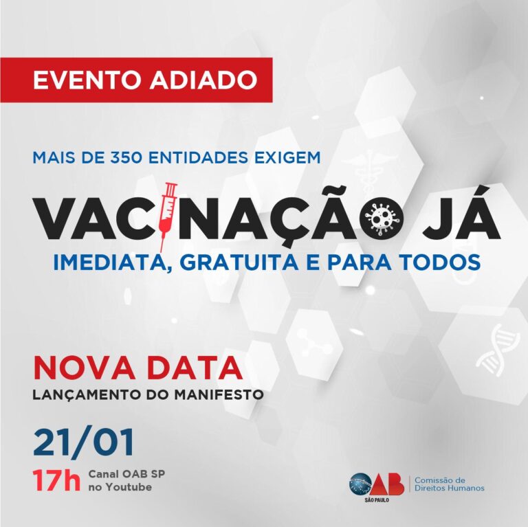 Lançamento de manifesto que exige “vacinação já” contra covid-19 será no dia 21