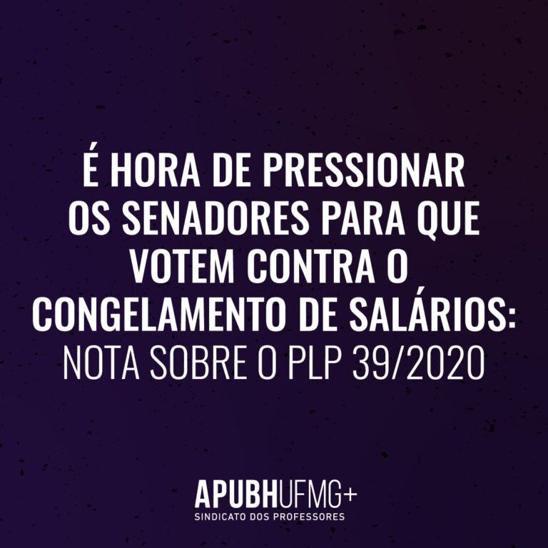 É hora de pressionar os senadores para que votem contra o congelamento de salários: Nota sobre o PLP 39/2020