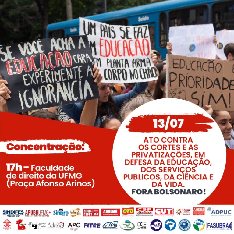13/07: Ato contra os cortes e as privatizações, em defesa da Educação, dos Serviços Públicos, da Ciência e da Vida