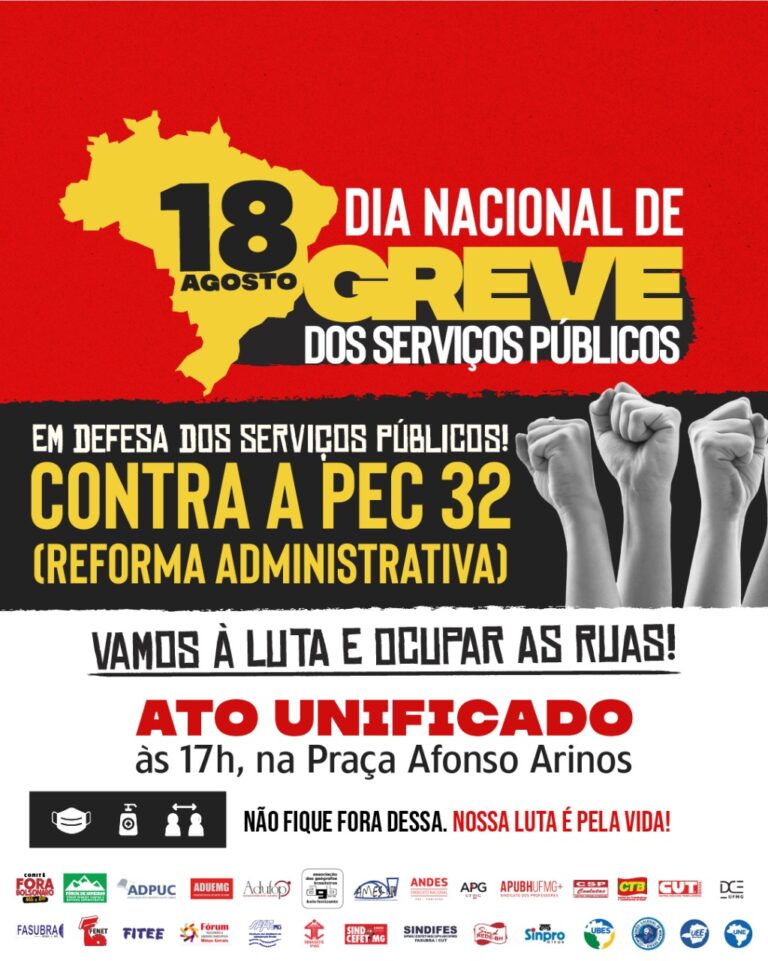 18/08: Greve Nacional do dos Servidores Públicos e Contra o Governo Bolsonaro: Abaixo à Reforma Administrativa!