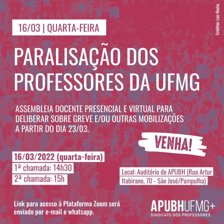 Docentes da UFMG aprovaram adesão à Paralisação Nacional do Funcionalismo Público Federal, no dia 16/03